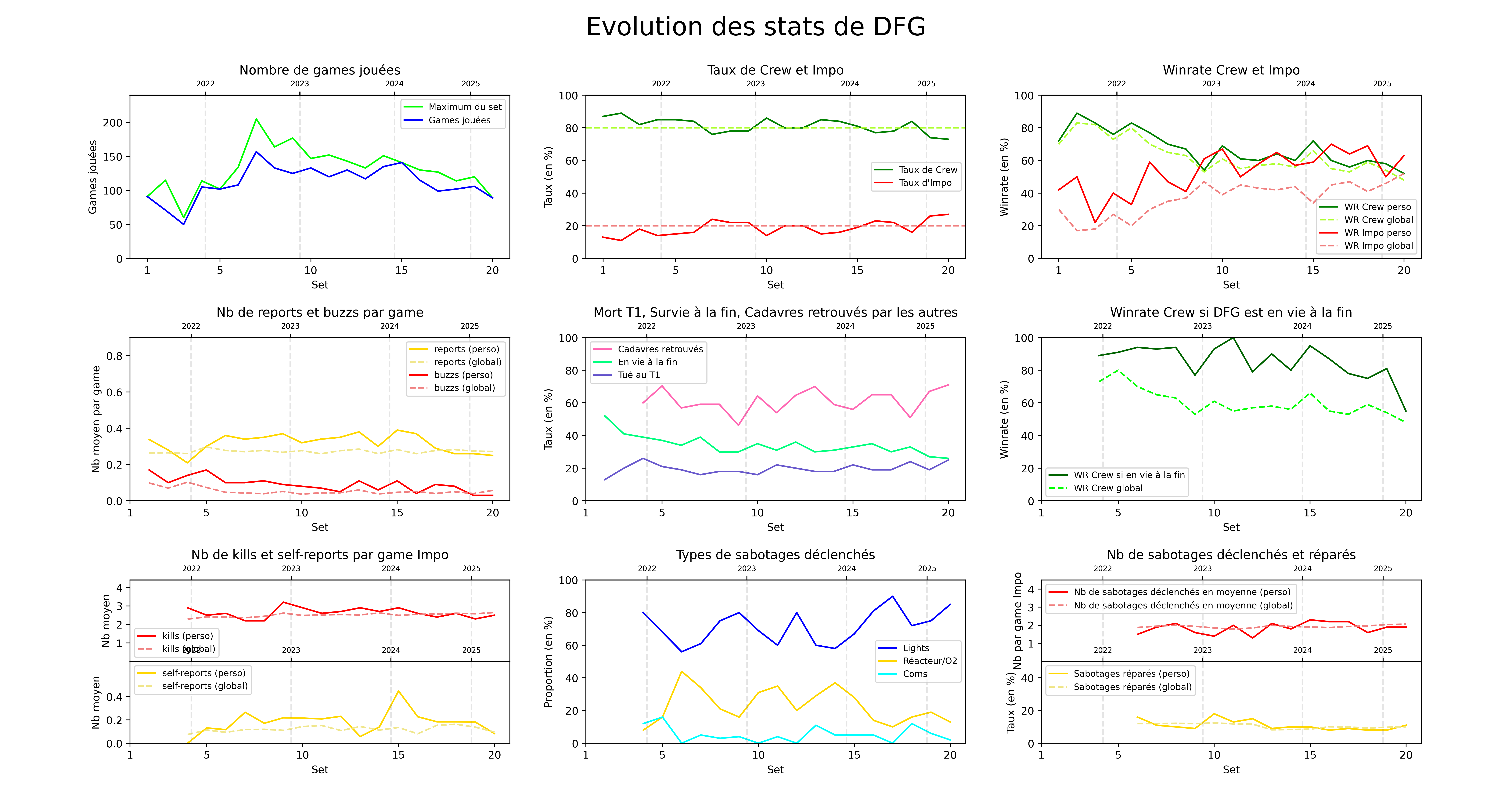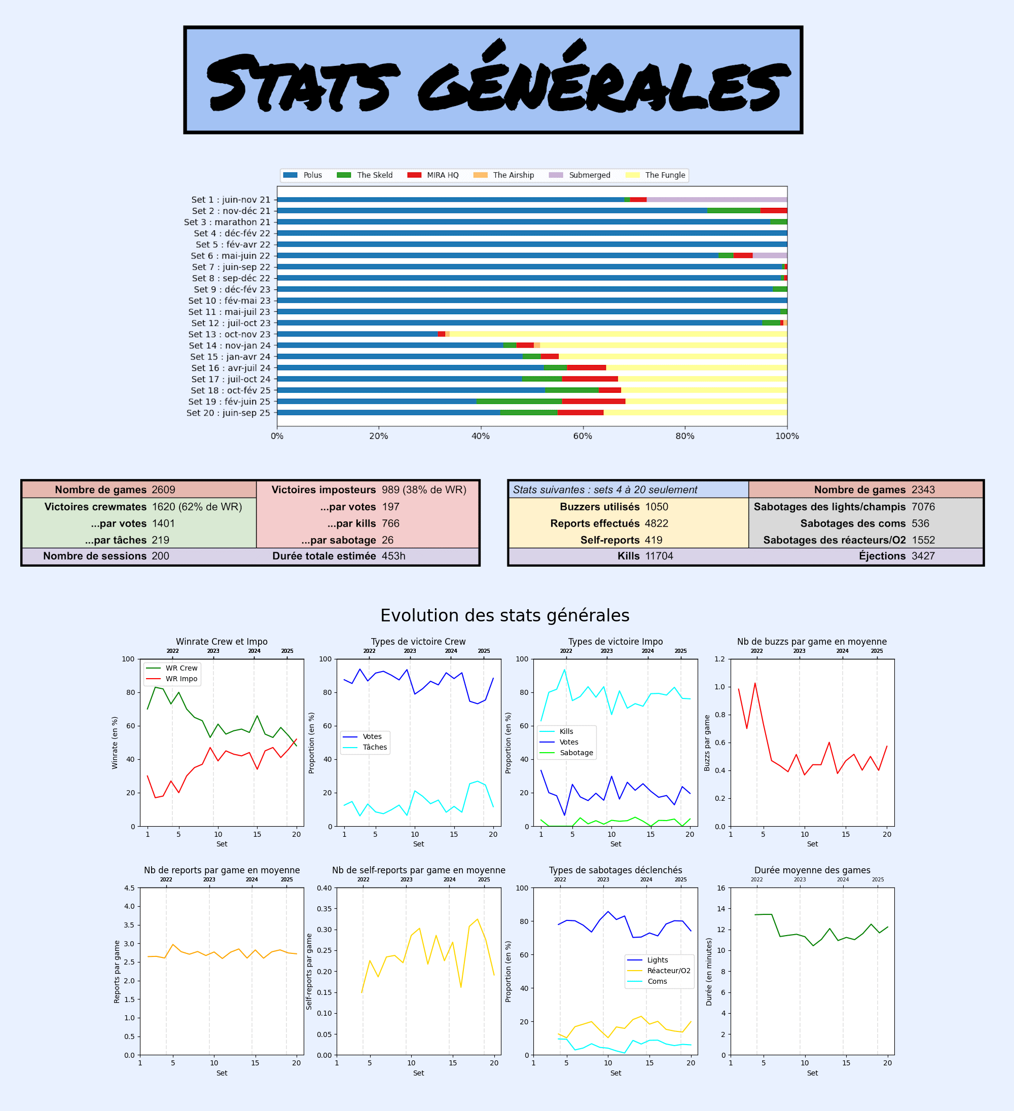 Des statistiques générales sur les sets 1 à 20, y compris les dates, les maps utilisées et plein de chiffres et de graphs.